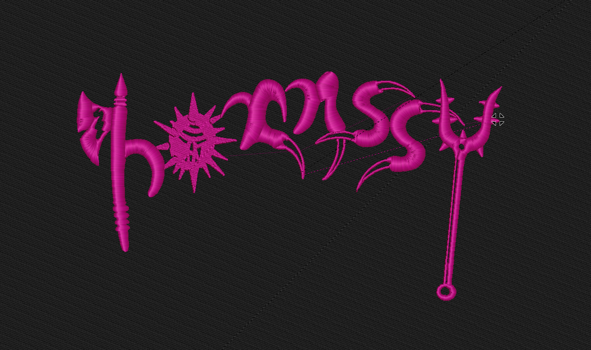 Design: Sharp Metal Font Logo in Neon Purple.